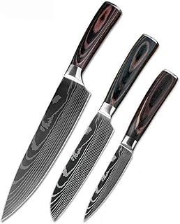 GZSC Couteau de Cuisine de Haute qualité Couteau de Chef 7CR17 Haut en Acier au Carbone Série Japonaise Inoxydable Damas Laser Motif du Chef 8 po Couteau de Cuisine (Color : 3 PCS Value Set)