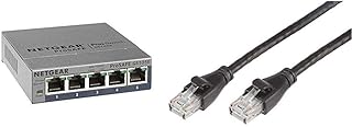 Netgear GS105E-200PES Smart Switch Ethernet Web Manageable 5 Ports Gigabit | Protection à Vie ProSafe & Amazon Basics Câble réseau Ethernet RJ45 catégorie 6-1,5 m - 5 câbles