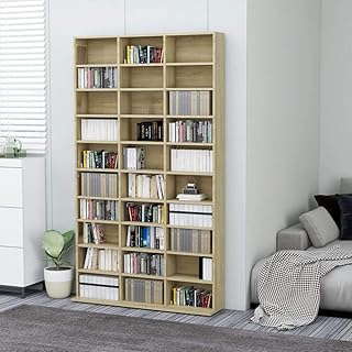 vidaXL Armoire à CD Bibliothèque Etagère de Rangement Etagère à DVD Livres avec 30 Compartiments Bureau Chêne Sonoma 102x23x177,5 cm Aggloméré