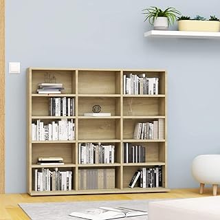 vidaXL Armoire à CD Bibliothèque Etagère de Rangement Etagère à DVD Livres avec 15 Compartiments Bureau Chêne Sonoma 102x23x89,5 cm Aggloméré