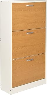 ts-ideen Étagère Armoire Meuble à Chaussures de Rangement 3 Compartiments 121 x 64 cm Bois Blanc Chêne