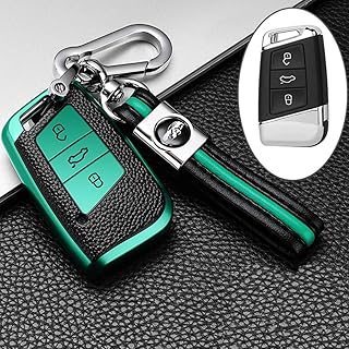 ontto Coque de protection pour clé télécommande de voiture VW Magotan Passat B8 CC Golf 7 Tiguan MK2 Jetta Skoda Superb A7 Kodiaq en TPU Coque de protection pour clé 3 touches, vert