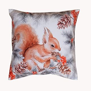 Kamaca Série écureuil avec noisette - Motif imprimé de qualité supérieure - Attire tous les regards - Automne et hiver - Housse de coussin de 40 x 40 cm.