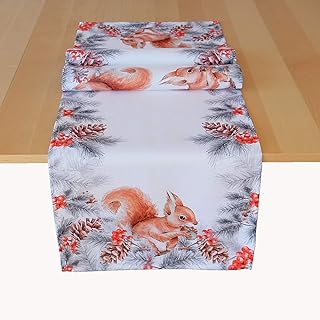 Kamaca Chemin de table 40 x 140 cm, motif écureuil avec noix, imprimé de qualité supérieure, pour l'automne et l'hiver (40 x 140 cm)