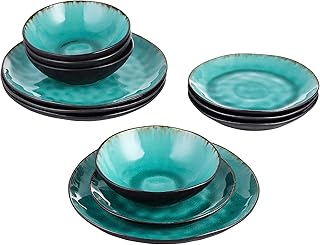 vancasso, Série Aqua, 12 Pièces Bols à Soupe, Assiette Grande en Grès Fait à la Main, Style Japonais