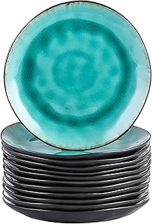 vancasso, Série Aqua, 12 Pièces Assiette Plate à Dîner, Assiette Grande en Grès Fait à la Main, Style Japonais