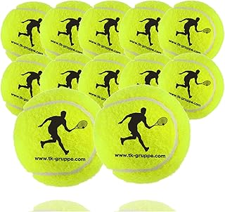 12 balles de tennis pour la compétition et l'entraînement - balle de tennis jaune pour toutes les surfaces - terre battue et salle - avec filet de tennis
