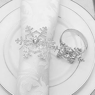 JulyLab Lot de 12 Ronds de Serviette Flocon de Neige Strass Mariage Banquet dîner de Noël Décor dragées Style1 Silver