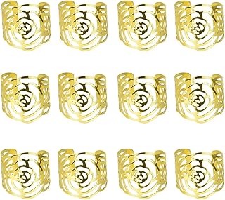YEAHIBABY Ronds de Serviette de Table,exquis hôtel restaurant anneau de serviette de fleur pour le banquet de mariage décoration de dîner de Noël,12pcs (or)