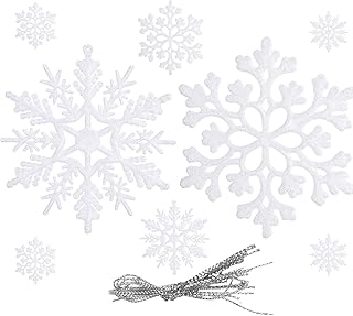 WELLXUNK® Décoration Flocon Noël, Noël Ornement Suspendu, Décoration Sapin Noël, Ornements Flocon Neige Noël, Flocon Neige Paillettes pour Décorations d'hiver Arbres Noël Fournitures Fête (Blanc)
