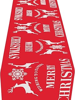 HOWAF Noël Chemin de Table en Coton de Jute Noël Décoration de Table Rouge Flocon De Neige Cerf Nappe Lavable pour Fête Noël Dîner Décoration De Table, 28*270CM