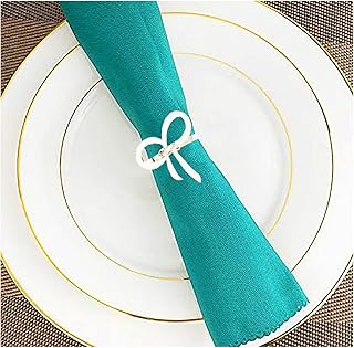 Lot de 12 ronds de serviette en argent avec nœud pour mariage, dîner, fête, décoration de table de Noël
