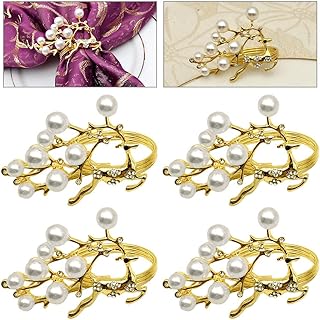 Keleily Anneaux de Serviette Cerf Or 4 Pièces Ronds de Serviette en Métal avec Décoration de Table en Nacre Porte-serviettes pour Noël, Mariage, Banquet, Dîner, Décoration de Table