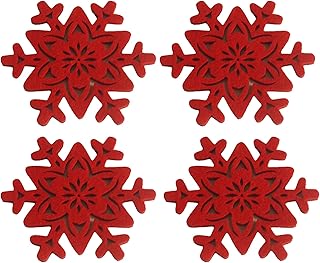 JINLL 4 Pièces Napperons De Table De Noël Et Dessous De Verre, Ensemble De Conception De Flocon De Neige Rouge pour La Décoration De Dîner De Mariage De Vacances d'hiver De Fête De Noël