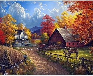 Xshuai® Kit de broderie diamant 5D à faire soi-même, motif ferme, fait à la main, strass, broderie au point de croix, pour salon, chambre à coucher, bureau, décoration de la maison (ferme)