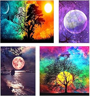 Birdsunshine DIY 5D Diamond Painting, 4 lots de peinture diamant 5D à faire soi-même, motif lune, motif plein diamant, broderie en cristal, pour décoration murale de la maison (30 x 40 cm)