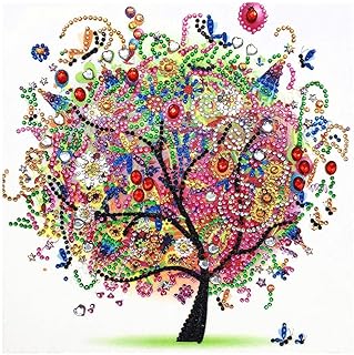 Prosperveil Kit de broderie diamant 5D à faire soi-même - Motif arbre et fleurs multicolores - Avec perles en strass - Décoration murale pour le salon, la chambre à coucher, la décoration de la maison