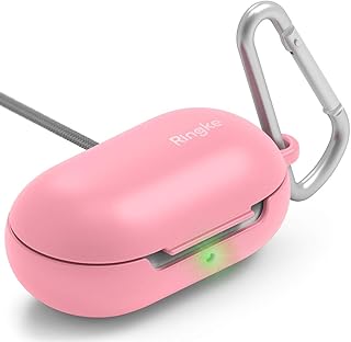 Ringke Coque pour Galaxy Buds Plus/Galaxy Buds Étui Protecteur Anti-Rayures TPU Souple Housse de Protection Coque pour Galaxy Buds+ / Galaxy Buds avec Mousqueton - Pink